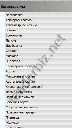 В данном разделе органы выбраны из функционального тестирования Базовой версии Паркес. По каждой системе выбраны органные нозоды. Набор позволяет определить локализацию патологического процесса.